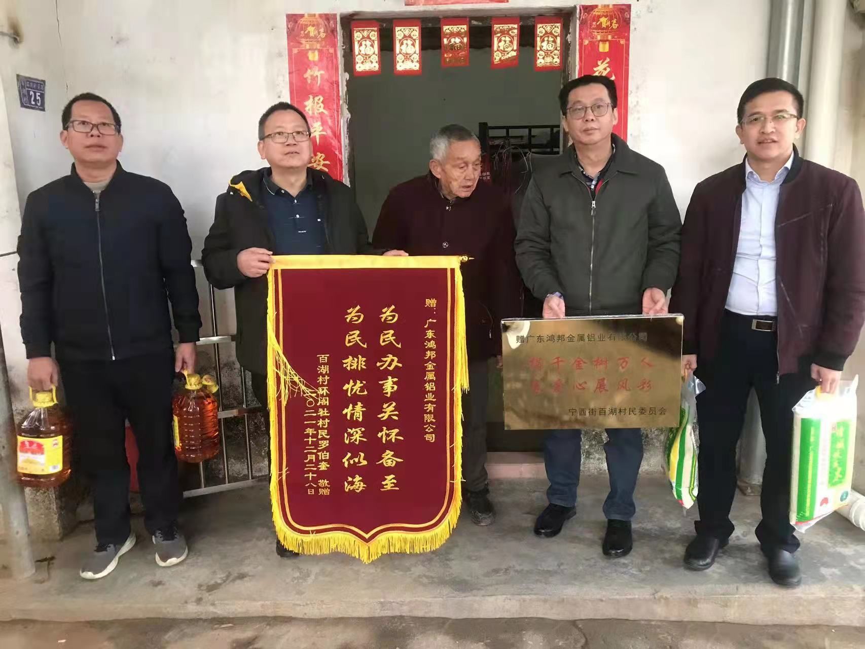 • 得益于周邊村以及社會(huì)各界的支持,廣東鴻邦金屬鋁業(yè)有限公司自成立以來(lái)一直穩(wěn)步發(fā)展。為進(jìn)一步推動(dòng)村企共建、和諧共處,2022年2月23日下午,在增城區(qū)百湖村委員會(huì)羅文福書(shū)記及環(huán)閣社羅振雄社長(zhǎng)的陪同下,鴻邦公司財(cái)務(wù)總監(jiān)、工會(huì)主席何景南一行走訪慰問(wèn)貧困低保戶羅伯奎,并為他送去了大米、食用油及搭建遮雨棚等生活物資。在走訪過(guò)程中,慰問(wèn)小組和羅伯奎親切交談,細(xì)致了解他的家庭收入、健康情況等,認(rèn)真聽(tīng)取他家目前存在的困難和問(wèn)題,鼓勵(lì)他要積極樂(lè)觀,樹(shù)立信心,勇敢的面對(duì)生活的…
