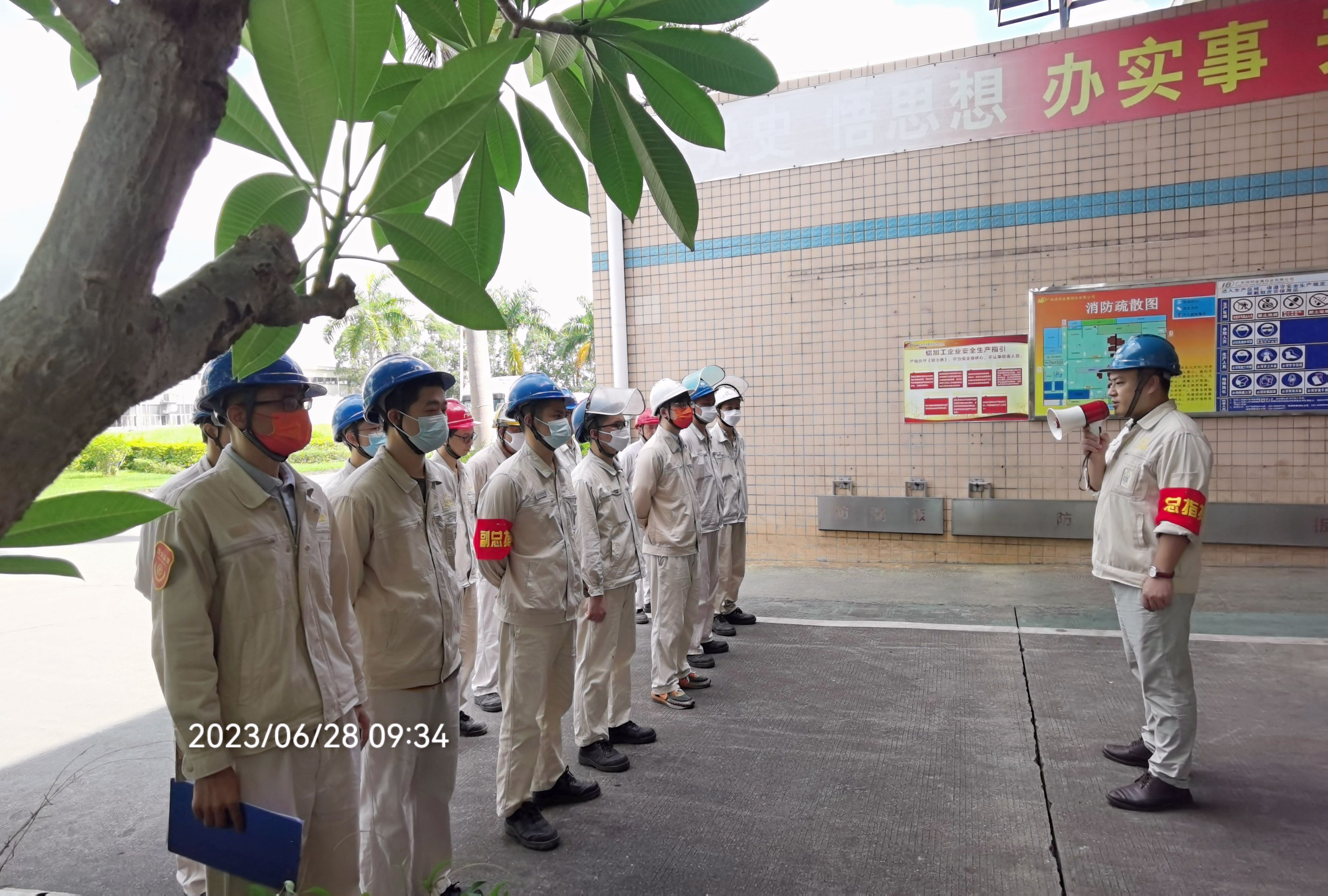 • 隨著一陣急促的警鈴聲響起,拉開(kāi)了廣東鴻邦金屬鋁業(yè)有限公司(下稱“廣東鴻邦”)安全生產(chǎn)月活動(dòng)“鋁液爆濺”突發(fā)事故應(yīng)急救援演練的序幕。2023年6月28日9:35時(shí),在廣東鴻邦金屬鋁業(yè)有限公司搓灰作業(yè)區(qū),作業(yè)人員在回轉(zhuǎn)窯前利用未烘干水分的鍋底斗,進(jìn)行接鋁液過(guò)程中發(fā)生了鋁液爆濺,一名作業(yè)人員右小腿燙傷。隨著總指揮的一聲令下,鋁液燙傷應(yīng)急救援預(yù)案啟動(dòng),各組人員相互協(xié)調(diào)配合,應(yīng)急救援迅速有序展開(kāi)…… 為扎實(shí)開(kāi)展“安全生產(chǎn)月”各項(xiàng)活動(dòng),牢固樹(shù)立“人人講安…